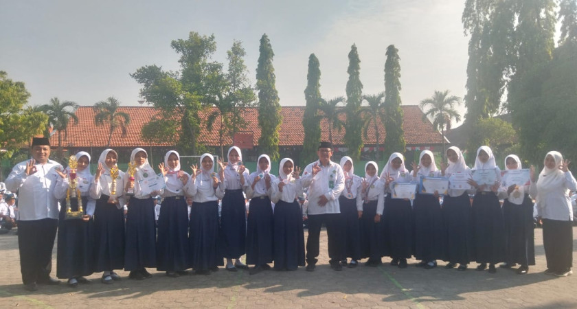Kab. Mojokerto (MTsN 3) – Senin (8/9/2025), Kepala MTsN 3 Mojokerto, Gepi Himawan, menyerahkan secara simbolis tropi berbagai kejuaraan yang berhasil diraih siswa-siswi MTsN 3 Mojokerto selama bulan Agustus hingga September 2025. Penyampaian tropi ini dilaksanakan usai apel rutin hari Senin di halaman madrasah, dihadiri oleh seluruh guru, tenaga kependidikan, dan siswa.