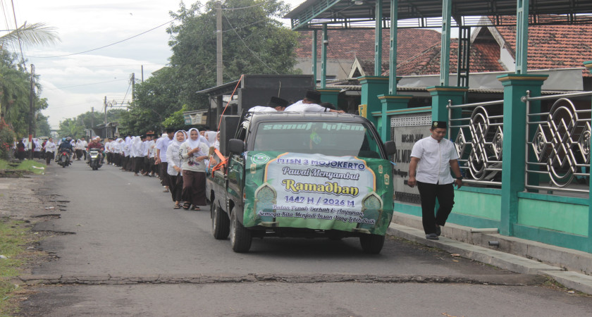 Kab. Mojokerto (MTsN 3) — Seluruh siswa dan Guru dan Tenaga Kependidikan (GTK) MTsN 3 Mojokerto menggelar pawai dalam rangka menyongsong datangnya bulan suci Ramadhan 1447 H/2026 M, Jumat (13/2/2026). Kegiatan tersebut dilaksanakan dengan berjalan kaki melintasi jalan-jalan kampung di sekitar lingkungan madrasah.