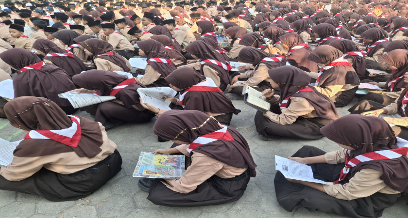 Kab. Mojokerto (MTsNb3) - MTsN 3 Mojokerto menggelar kegiatan Jumat Literasi yang menjadi bagian dari gerakan literasi membaca di lingkungan madrasah. Jumat (30/8/2024). Hampir seribu siswa berpartisipasi dalam kegiatan ini dengan membaca bersama di halaman madrasah. Buku-buku yang dibaca siswa dibawa dari rumah dan setelah selesai membaca, siswa diberi kesempatan untuk menyimpan buku tersebut di sudut kelas yang dijadikan sebagai ruang pojok baca.